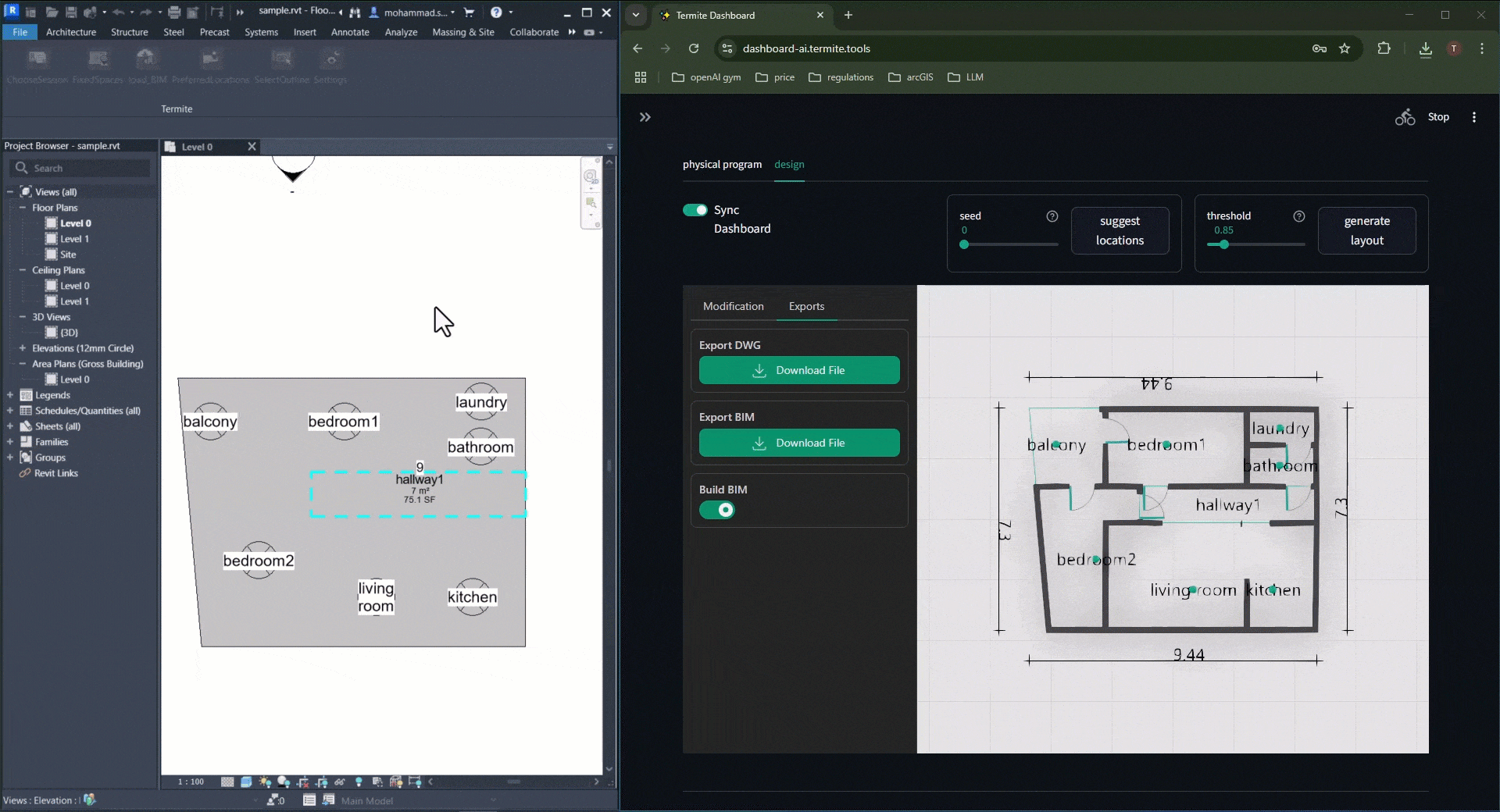 Upload your plan to a session, generate a design with Termite AI, and seamlessly sync it with your CAD software or export it in your preferred format.